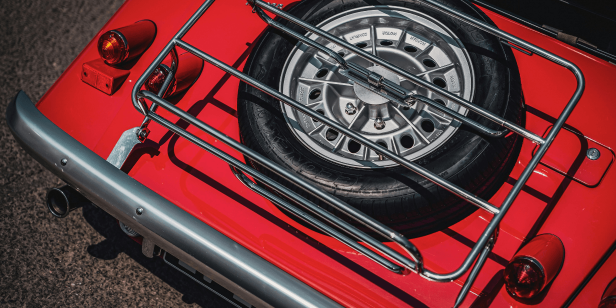 Vintage red car with spare tire in an external rack. Source:Canva